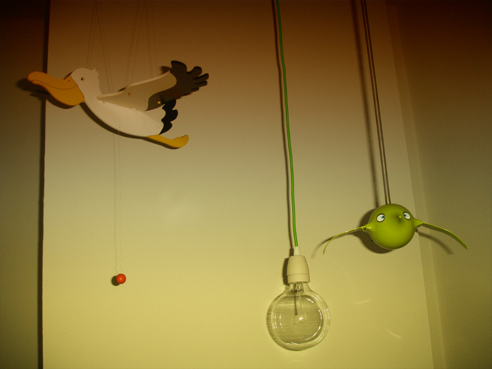 | maja albatros og hopti har fået fint selskab af den grønne "lampe" på h's værelse... |